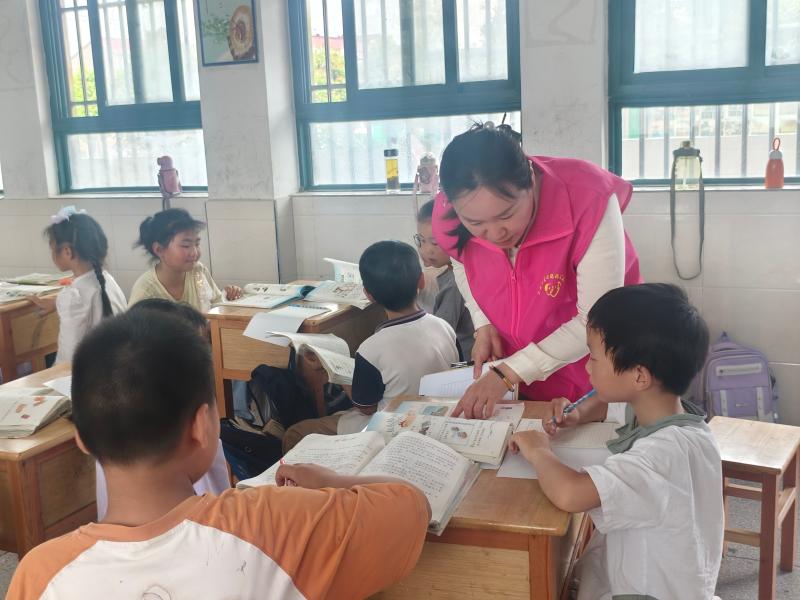 爱心妈妈们穿梭于孩子们中间,时而弯腰凑近,倾听孩子读书,适时给予肯定与纠正;时而俯身凝视,观察孩子解题,提供巧妙的思路启发与温柔的鼓励,让孩子们在写字过程中收获成就感与自信心,感受到来自“妈妈”的关怀与支持。