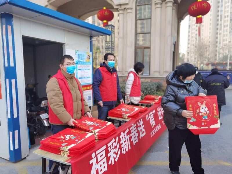 此次活动志愿者们深入结对共建华邦新华城小区,为居民们带去装有兔年春联和制作精美的“福”字的“新春大礼包”。活动现场喜气洋洋,欢声笑语。志愿者们热情地为过往居民发放“大礼包”,把浓浓的年味和新春祝福送给社区居民,大家拿着满载祝愿的春联,个个喜笑颜开。