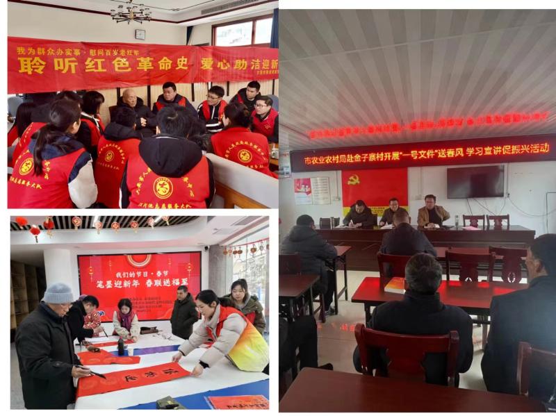 推动文化惠民 过喜庆新年。市农业农村局志愿服务队开展“送春风”学习宣讲促振兴活动,为群众讲述身边看得见、摸得着的新变化,把党的二十大精神“播洒”到群众的心田。市委办志愿服务队邀请书法家为社区居民撰写春联,迎新画福,把浓浓的年味和美好祝福送给社区居民,弘扬和传承了中华民族的传统文化,烘托了新春佳节的喜气氛围。