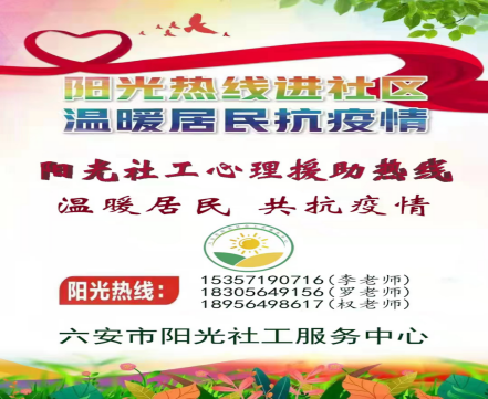 “老吾老以及人之老”,在疫情防控工作中,老年人心理防疫问题不容忽视。长期居家、社交活动减少而寂寞;因被各种正负面信息包围而疑惑和恐惧。为助力打赢疫情防控阻击战,关心关爱老年群体,预防和减轻疫情所致的心理困顿,六安市福寿社会服务中心、六安市养老服务信息中心、霍邱县养老服务信息中心、六安市阳光社会工作服务中心开通了助老便民心理援助服务热线。截至目前,热线平台已累计接听咨询服务电话302人次。