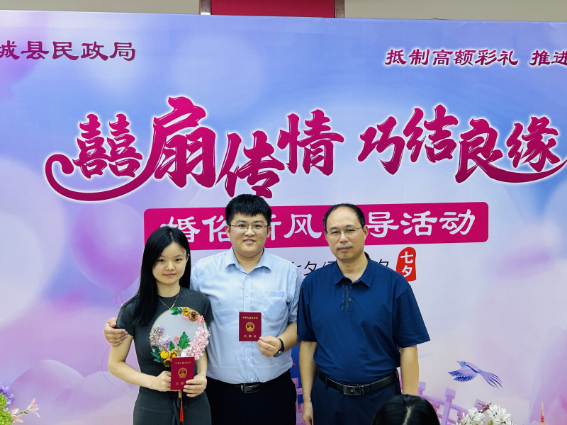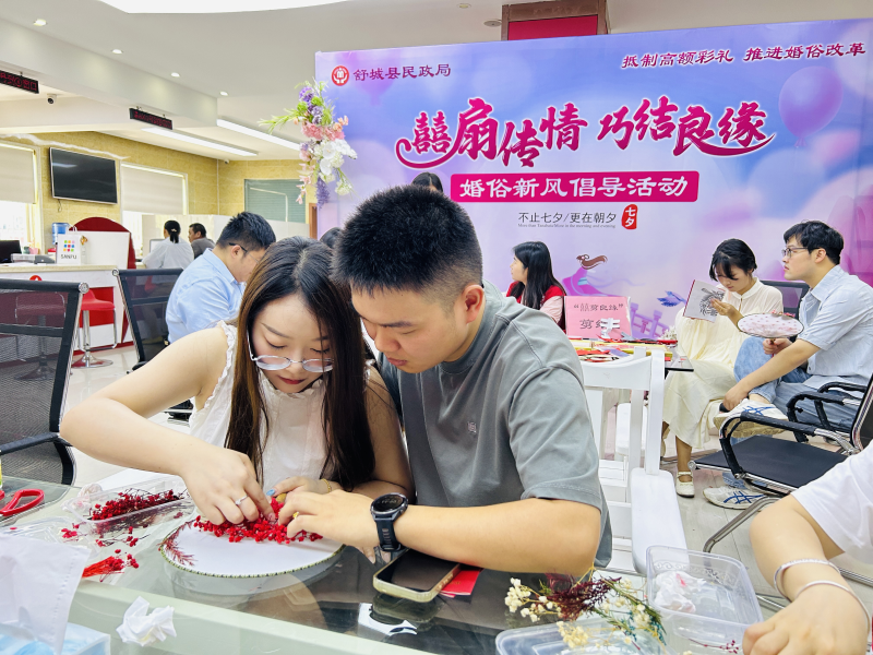为进一步弘扬中华优秀传统文化,倡导文明简约、绿色温馨的婚俗新风,8月29日,舒城县民政局婚姻登记处成功举办"囍扇传情·巧结良缘"七夕婚俗新风倡导活动。