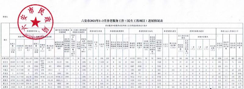 六安市2021年1-4月社会养老服务体系和养老智慧化建设进度情况表(含老年人补贴)