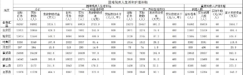 独播库 2021年1-7月份困难残疾人生活和护理补贴进展情况表
