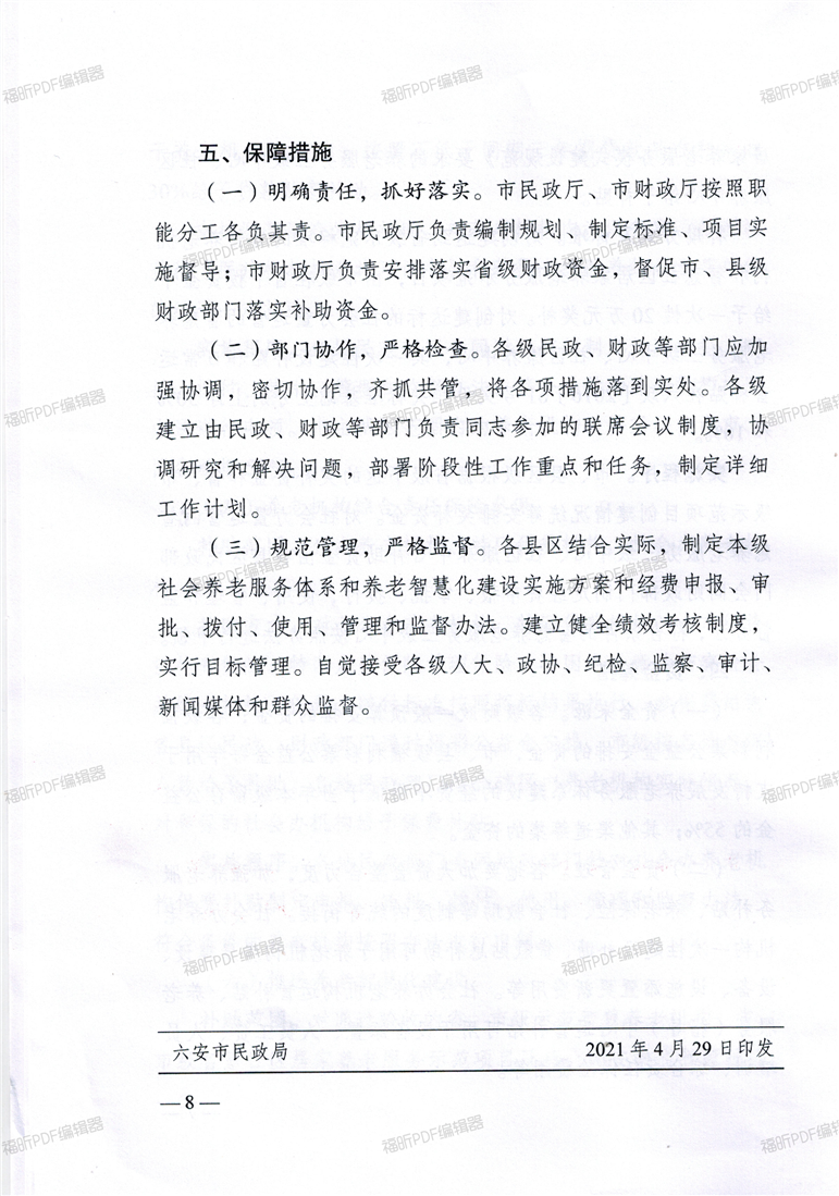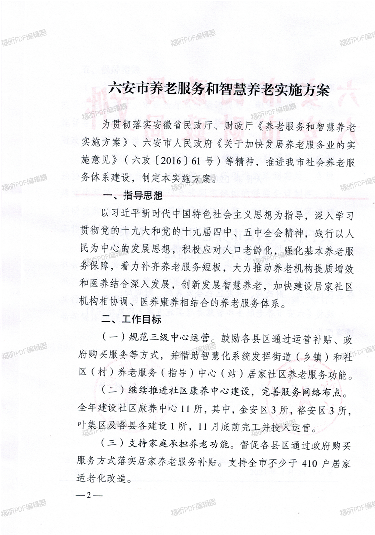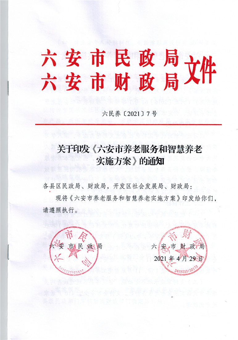 关于印发《六安市养老服务和智慧养老实施方案》的通知