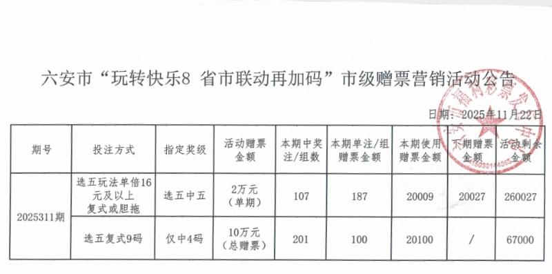 六安市“玩转快乐8 省市联动再加码”市级赠票营销活动公告