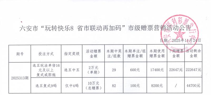 六安市“玩转快乐8 省市联动再加码”市级赠票营销活动公告