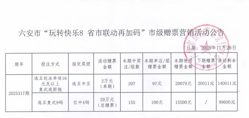 六安市“玩转快乐8 省市联动再加码”市级赠票营销活动公告