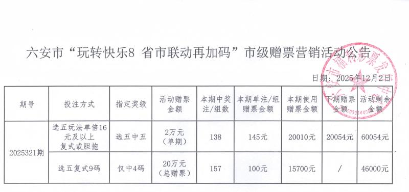 六安市“玩转快乐8 省市联动再加码”市级赠票营销活动公告
