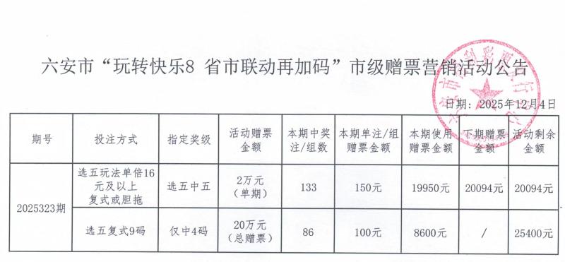 六安市“玩转快乐8 省市联动再加码”市级赠票营销活动公告