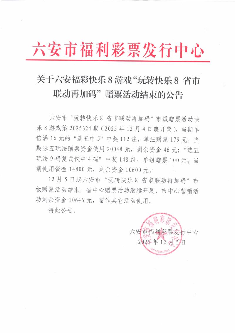 关于六安福彩快乐8游戏“玩转快乐8 省市联动再加码”赠票活动结束的公告