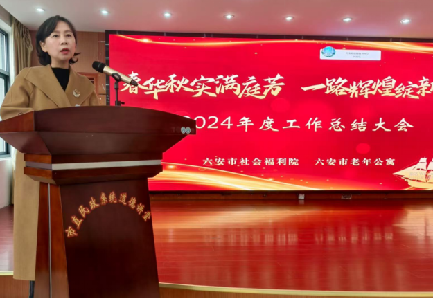 最后,六安市社会福利院(市老年公寓)党支部书记、院长夏多月作总结发言,对福利院在2024年取得的成绩和进步表示肯定。她指出,过去一年来全体职工勇挑重担,上下一心,成功申报全市康复定点机构,顺利承办全国院长培训班,积极推进成年孤儿安置工作,全面提升康养环境完成老院改造。她要求,在新的一年里,要谋划筹备“开门办院”,将“康教融合”的服务拓展到社会特殊儿童,全力打造普惠、共享、发展的“儿童友好家园”;要全面落实成年孤儿安置工作,落实落细孤儿成年后的关爱服务和保障措施,切实保障孤残儿童的合法权益;要切实提升老年公寓入住率,提升服务质量,打造特色亮点,绘就入住长者“幸福晚景”。