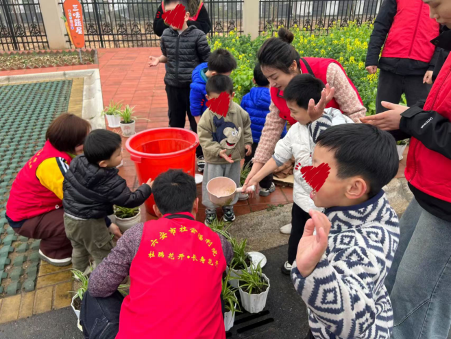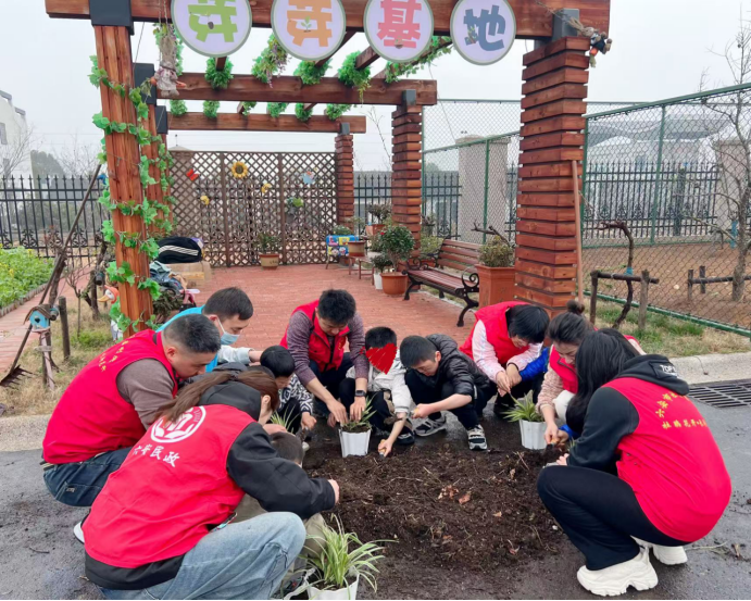 活动伊始,青年理论学习小组副组长先向大家讲述植树节的历史和意义,详细介绍绿植树苗的栽种方法,并现场进行示范和指导。小组成员和孩子们认真倾听,不时提问“植树节的来历?”“怎么刨土”等,现场人员一一解答。