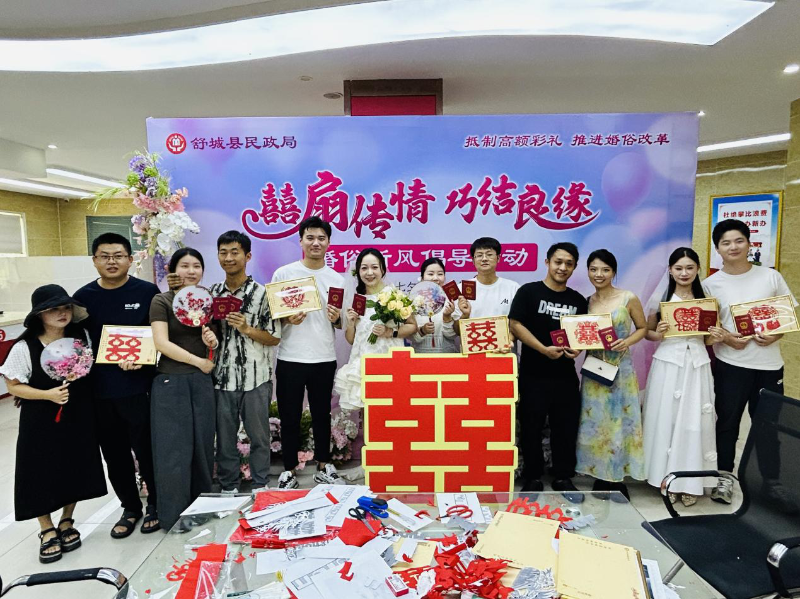 为进一步弘扬中华优秀传统文化,倡导文明简约、绿色温馨的婚俗新风,8月29日,舒城县民政局婚姻登记处成功举办"囍扇传情·巧结良缘"七夕婚俗新风倡导活动。